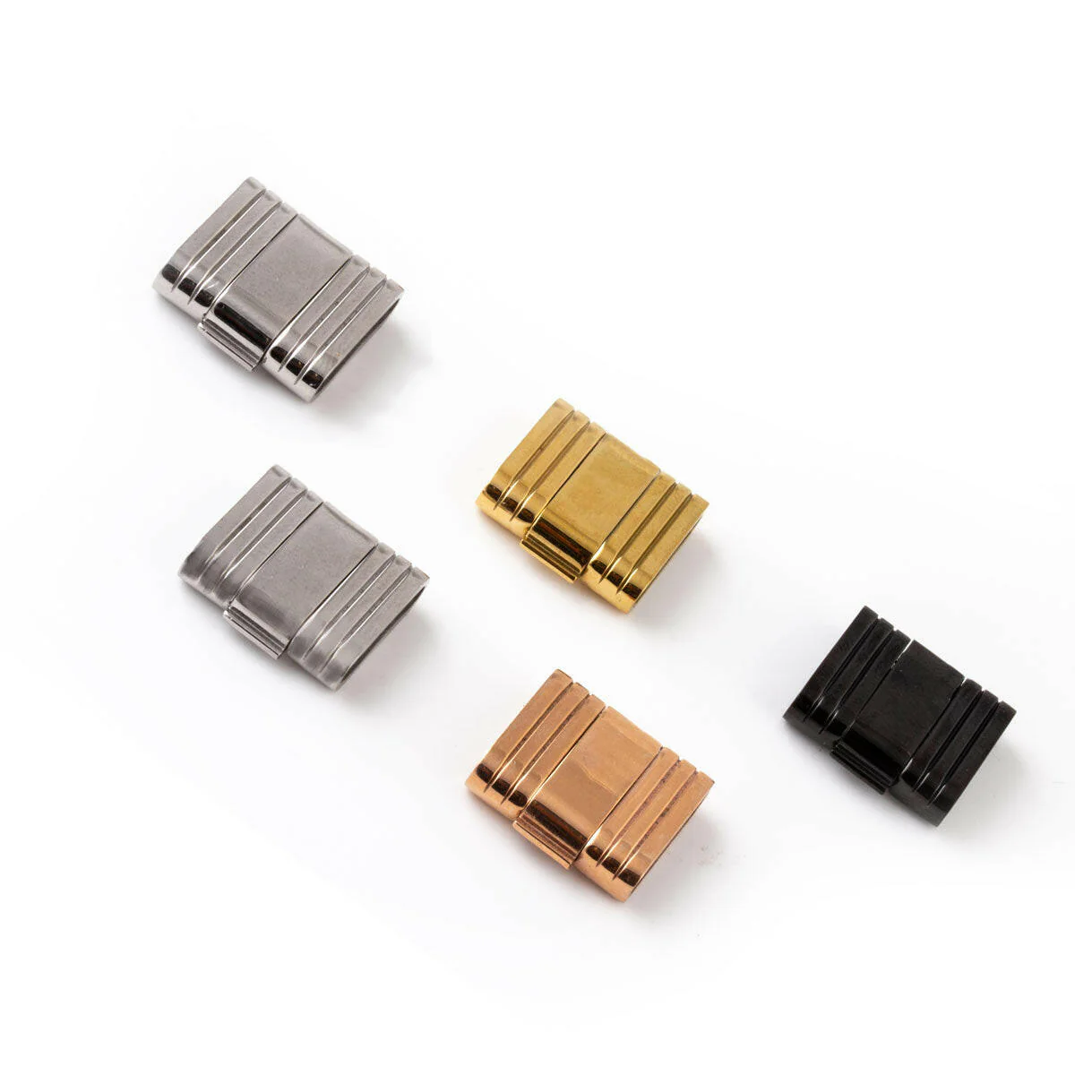 Metal clasp : Stainless steel, brushed steel, PVD rose gold, PVD yellow gold, PVD black.